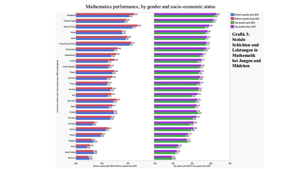 Soziale Schichten und Leistungen in Mathematik bei Jungen und Mädchen (Grafik 3)