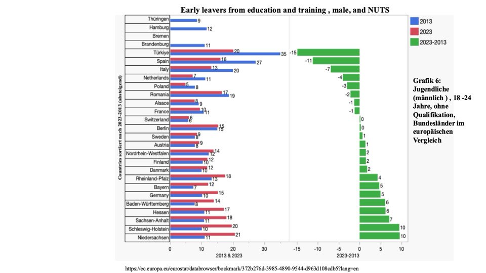 Jugendliche (männlich ) , 18 -24 Jahre, ohne Qualifikation, Bundesländer im europäischen Vergleich (Grafik 6)