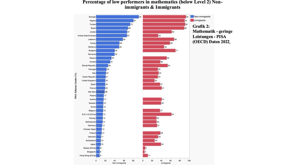 Mathematik - geringe Leistungen - PISA (OECD) Daten 2022 (Grafik 2)