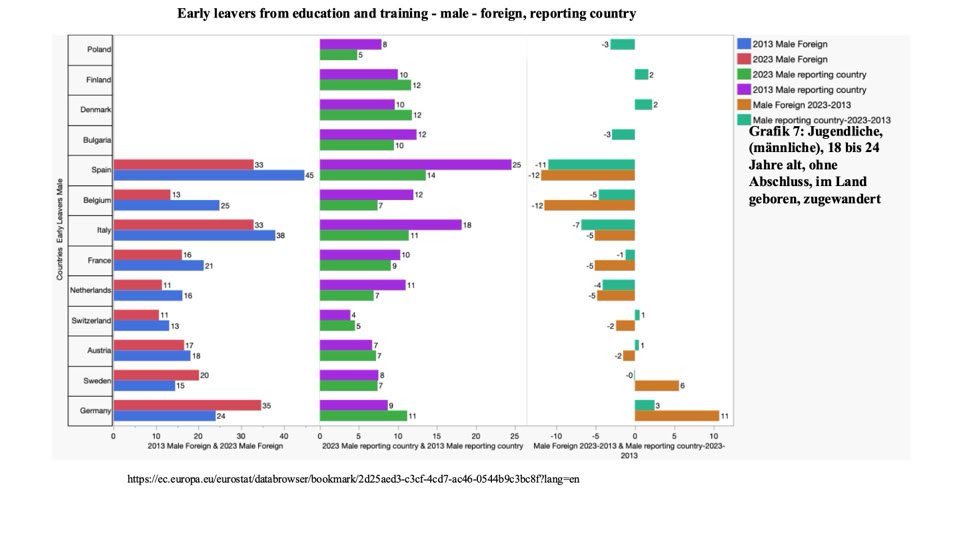 Jugendliche, (männliche), 18 bis 24 Jahre alt, ohne Abschluss, im Land geboren, zugewandert ( Grafik 7)