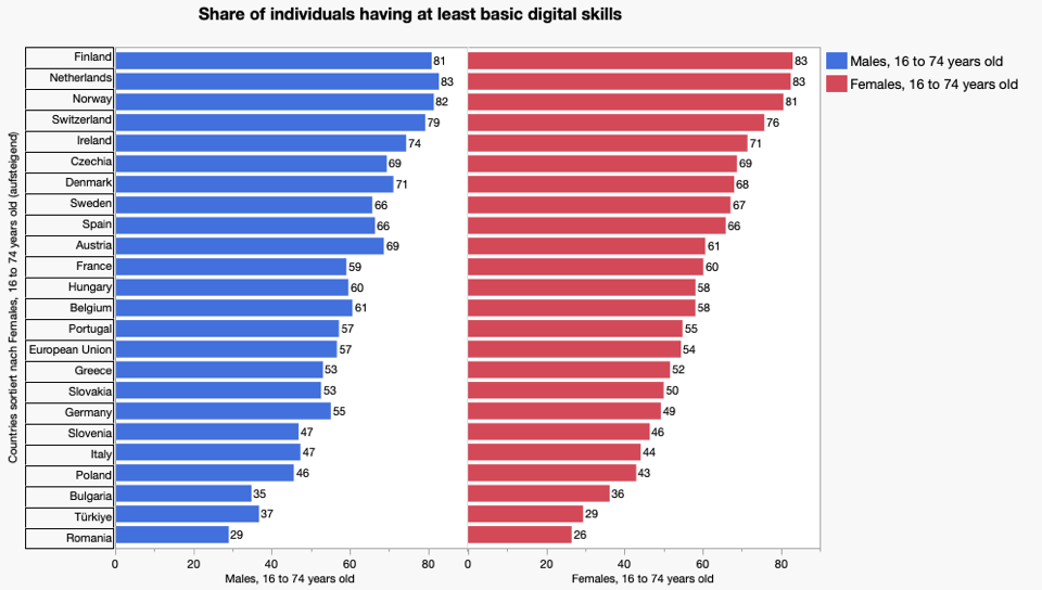 Share of individuals having at least basic digital skills, by sex