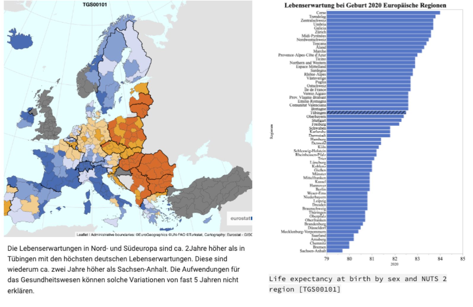 Lebenserwartungen in europäischen Regionen
